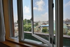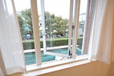窓はこんな感じで開きます。外には緑がいっぱいですね。