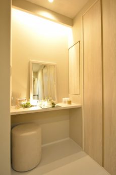 洗面台の後ろには、ドレッサーまで設置されています。座ってゆっくり髪を乾かしたりお化粧を落としたりと、女性には特に嬉しいですよね♬