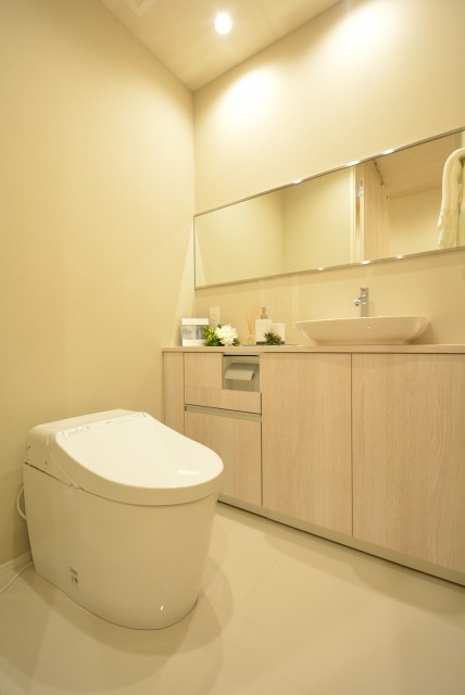 手洗いカウンターや幅が広い鏡も付いていて、ワンランク上の雰囲気です。