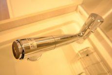 水洗はハンドシャワータイプ。広い洗面ボウルを流したりに重宝します。