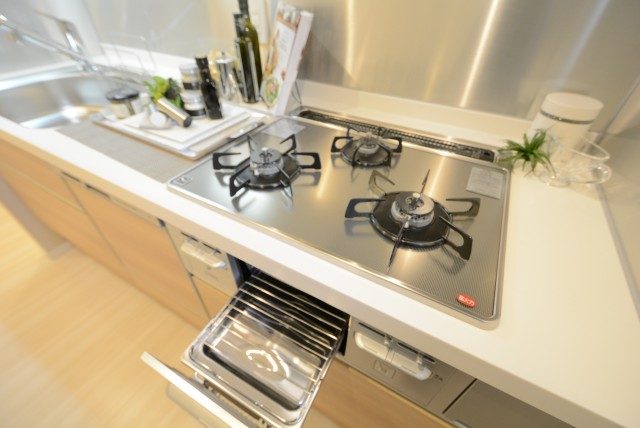 グリル付きの3口ガスコンロです (´∀`*)~♪