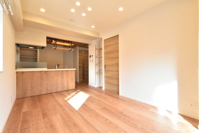 こちらは約12.4帖のリビング・ダイニング・キッチン。
