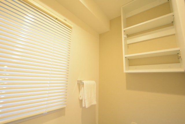 吊り戸がしっかりあるので、トイレットペーパーのストックなどを置いておけます (´∀`*)ノ