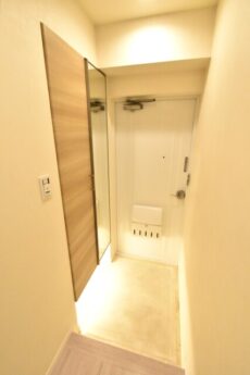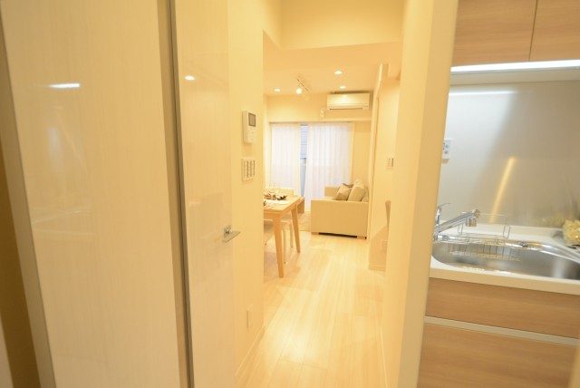 玄関横にはカメラ付きインターホンが付いていて、お部屋の中から訪問者を確認することが出来ます。手が離せない時などに、わざわざ玄関まで来なくていいのは嬉しいですね。