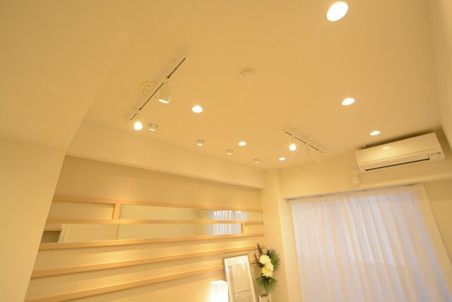 天井埋込のダウンライトは、ここだけ電気をつけることもできるので、
