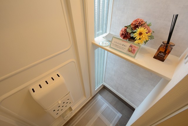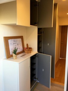 玄関は物件の第一印象を決める重要なポジションでもありますので、お花や写真などで可愛く飾り付けたいところですね。