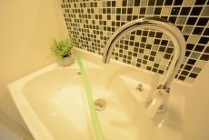 ミラーの下がモザイクタイルになっていてカワイイです。