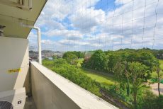 最後にバルコニーへ出てみます。リビングダイニングキッチンと南側の洋室から出ることができる約5㎡の南向きバルコニー☆お洗濯物もバッチリ乾きそうです(●´∀`)