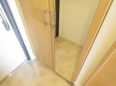 表扉の一部には縦長の鏡も設置されており、お出かけ前の身だしなみチェックもサッと出来て便利です。