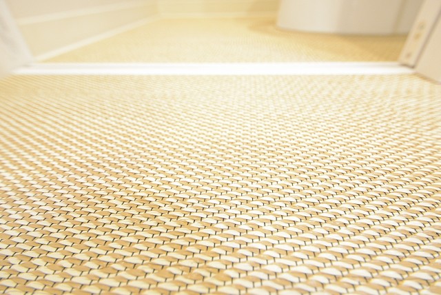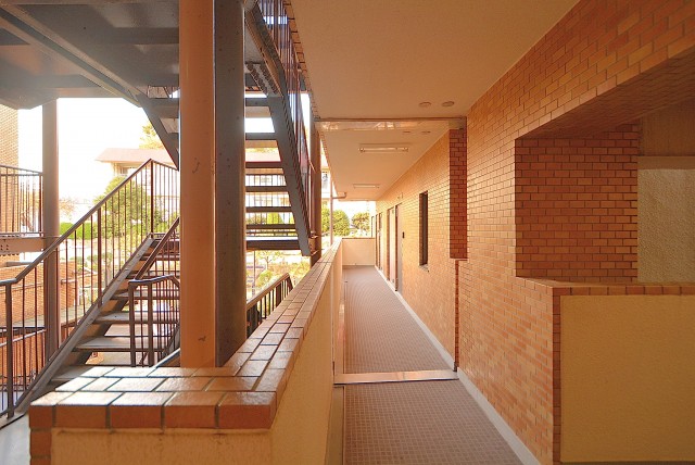 廊下壁面も外観と同じ色合いのタイル貼りになっています。
