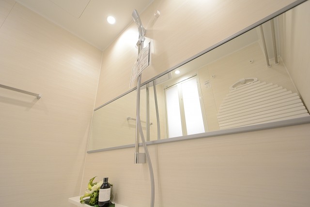 横に長い鏡はお風呂を広く見せる効果もあります。