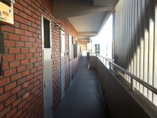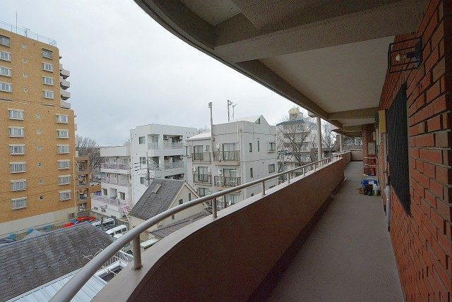 外廊下になっていますね。お部屋はすぐそこなので台風の日は全力で駆け抜けましょう!!