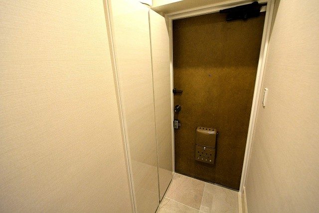 玄関の左手にはトールサイズのシューズボックスがあります。大きめサイズでばっちり☆棚は可動式なのでブーツの収納もOK♪♪扉には大きな姿見があるのでお出かけ前のチェックもバッチリです♪