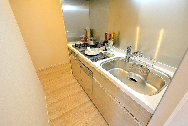 グリル付きの2口ガスコンロ、浄水器付きの水栓、食器洗浄機付きです!!