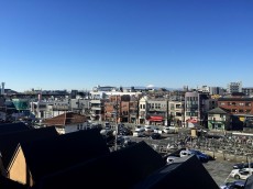 バルコニー左側に通っているのが甲州街道です。肉眼だと新宿の都庁が遠くに確認出来ます。
