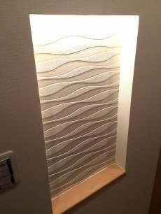 廊下左手にニッチがありました。お気に入りの絵や写真で楽しい空間を演出できそうですよ♪ニッチ自体にも装飾されています。
