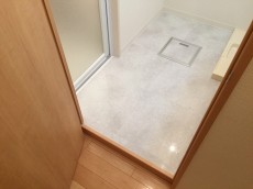そうそう。廊下を進んで右手、観音開きのドアを開けると洗濯機置場になっています。