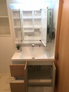 他にもミラーキャビネット、シンク下を併用すればモノの置場に困ることはなさそうです。