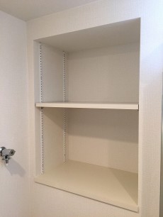お隣は洗濯機置場。洗濯機置場の奥には、収納スペースも用意されています♫