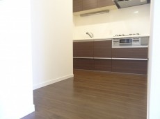 キッチンスペースは約3.9畳。こちらもゆとりのある広さです。冷蔵庫は一番奥のところへ置けるようになっています。