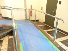エレベーター脇にもスロープがついています。エレベーターでお部屋へ向かいます。
