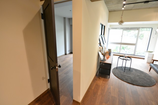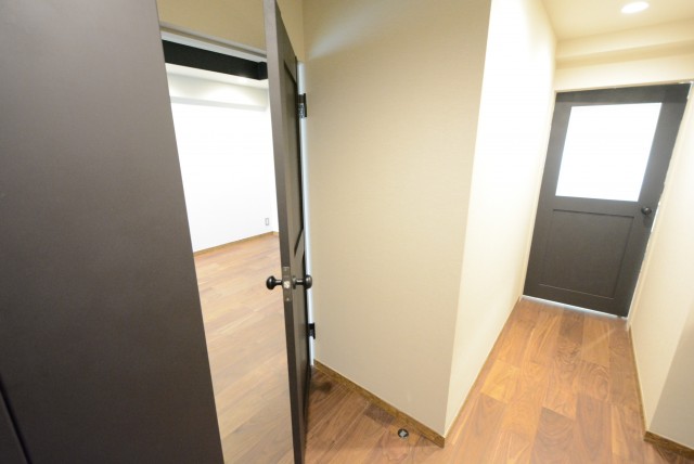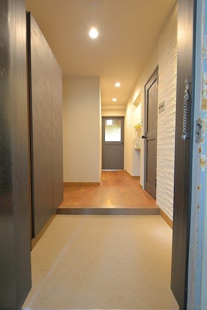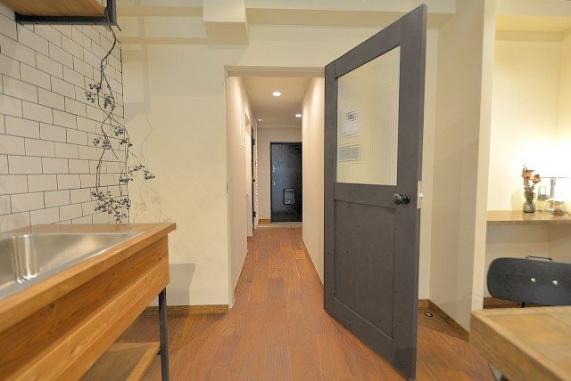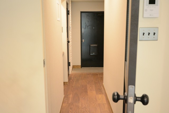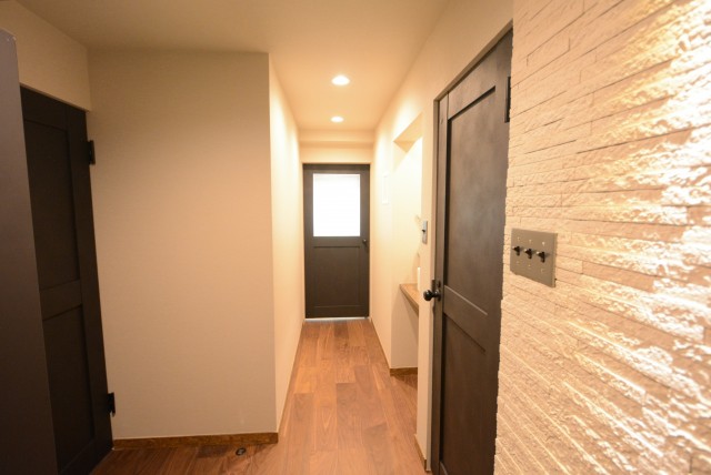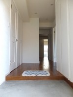 玄関をあがると廊下がまっすぐのびており、左右にトイレや洋室などの扉が並んでいます。これなら宅急便など玄関先での対応時も生活スペースが見られる心配はありません。
