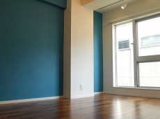 壁面の一部にカラークロスが使われており落ち着いた雰囲気です。