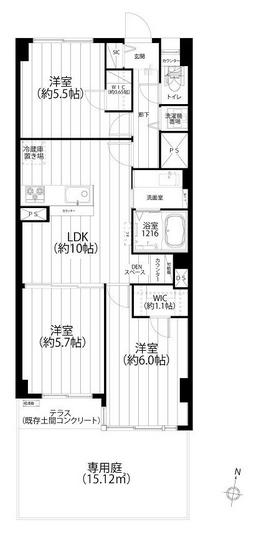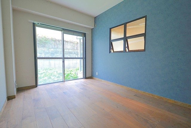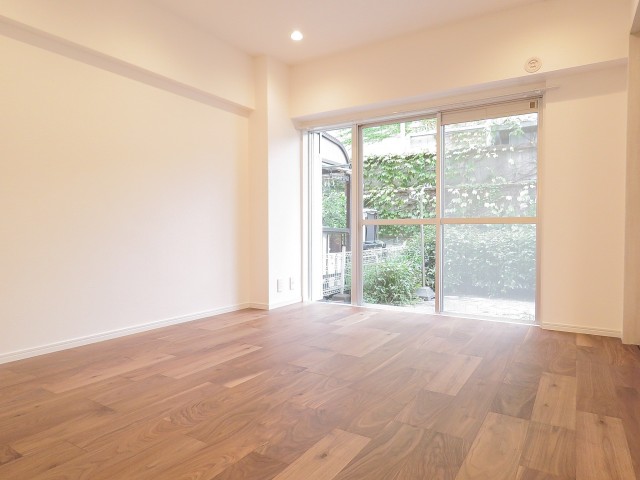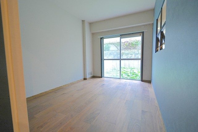 最後に約5.7帖の洋室から専用庭に出てみます。15.12㎡、南向き。