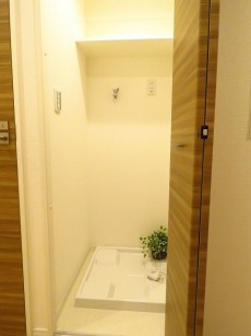 洗濯機置き場になります。洗濯洗剤などは洗面台がすぐそばにあるので、