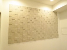 LDK内に窓はありませんが、壁面には調湿・消臭など空気を快適に保つ効果のあるエコカラットがついています。見た目がおしゃれでお部屋のアクセントにもなっています。