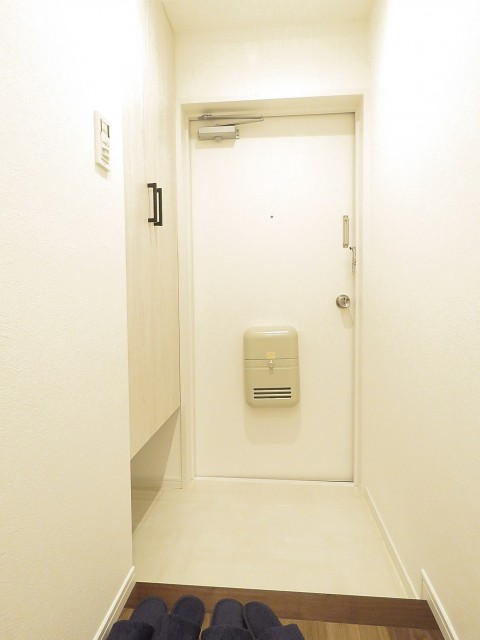 廊下には2つの収納があります。1つ目こちらはトイレお隣にあります扉付収納。