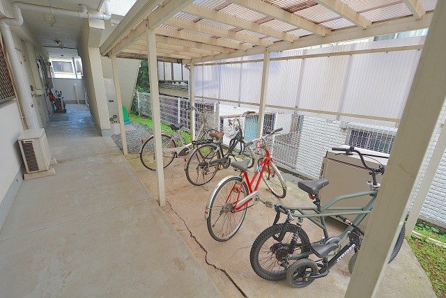 そしてマンション向かって右端が駐輪場とゴミ置き場になっています。