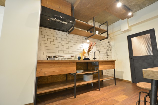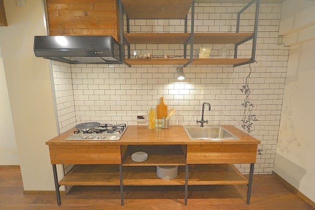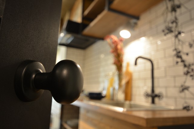後付で棚をつけて、お好みのカフェカーテンなどをつけて楽しむのも◎
