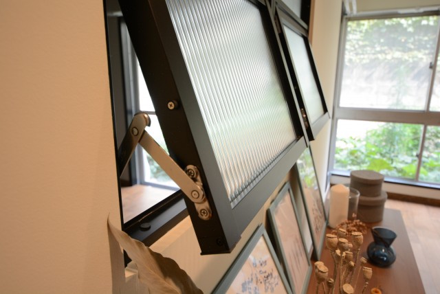 隣のお部屋との窓の波板ガラスも、レトロ感出してます。