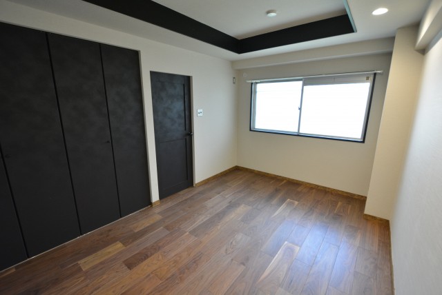 フローリングはもう一つの洋室と同じですが、天井中央が少し高くなっていてダークトーンの縁取りがされています。