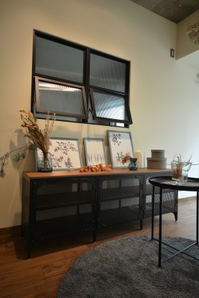 扉のついた収納は無く見せる収納となりますので、工夫が必要となります。