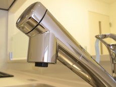 水栓は浄水機能付きシャワー水栓。切替えるだけで気軽に美味しいお水を使う事が出来ます。ノズルが伸びてシンクのお掃除も楽々ですよ。