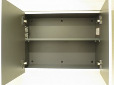 ミラーの内部は収納スペースになっているので、歯ブラシや基礎化粧品などの小物はこちらに収納してください。