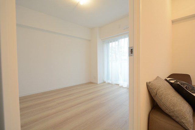 奥の部分は、本来の約7.3帖の洋室に戻ります。収納などは無いシンプルなお部屋ですが、広さは十分!