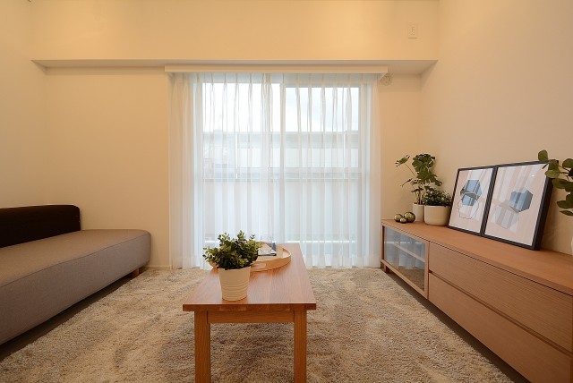 南東向きのバルコニーに面した窓からは明るい光が入ってきています。