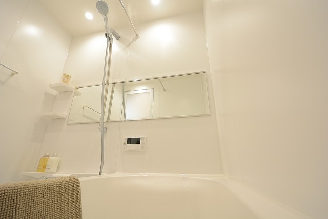 追い焚き機能付きでボタン一つでお風呂を沸かす事が出来ますよ。いつでも温かいお風呂に入れますね。