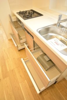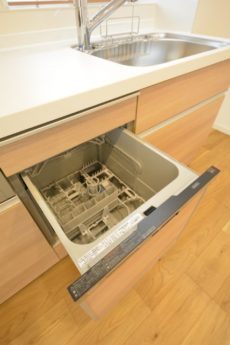 調理台下は食器洗浄乾燥機と引き出しタイプの収納になっています。高温で清潔綺麗に洗い上げてくれる食洗機。ただ、何より嬉しいのはみんなで食後をのんびり過ごせる事ですよね(^^)