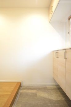 玄関ドアを開けて左に折れると大きなシューズボックスが見えてきます。