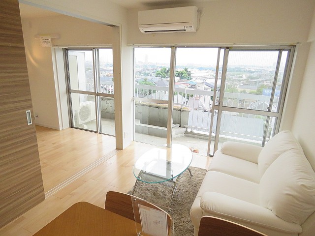 外は眼下に住宅街の広がるナイスビュー!この日はあいにくの曇天で分かりませんでしたが、多摩川も見えるようです。この眺めを見ながら食事をしたり、ソファでのんびりしたり・・・のびのびした毎日が送れそうです♪