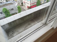 窓は2つとも騒音に配慮して二重サッシ。窓の外にはちょっとした植木が置けるようなスペースが設けられています。せっかくなので何か植物を育ててみるのもいいかも!眺望も最上階なだけあり視界を遮ることのない開放感のある眺めが広がっています。