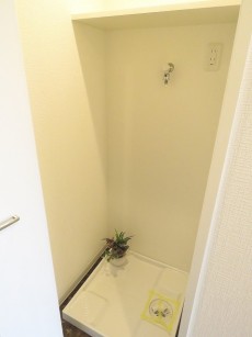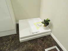 洗濯機置場と洗面化粧台はお隣同士。白基調で清潔感たっぷりです。