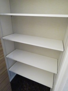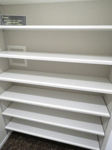 洗面室の向かい側にはまたまた棚付きの収納がつくられていました。