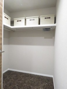 シューズインクローゼットの向かい側は約1.5帖のウォークインクローゼット。衣替えの衣類から掃除機、季節家電など大きな物まで色々仕舞っておけそうで頼もしいです。
