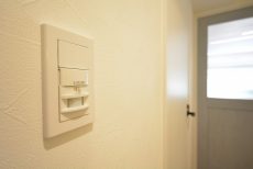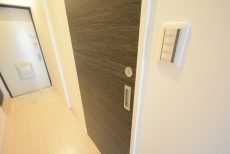 玄関横にはテレビモニター付きインターホンが設置されていて、お部屋の中から訪問者を確認する事が出来ます。「ハイ」と言う前にしっかりチェックしましょうね。