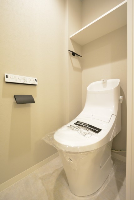 吊戸棚はありませんが、棚が付いていました。絶対にトイレ内にストックしたい物もあるので、これは大事ですよ(笑)